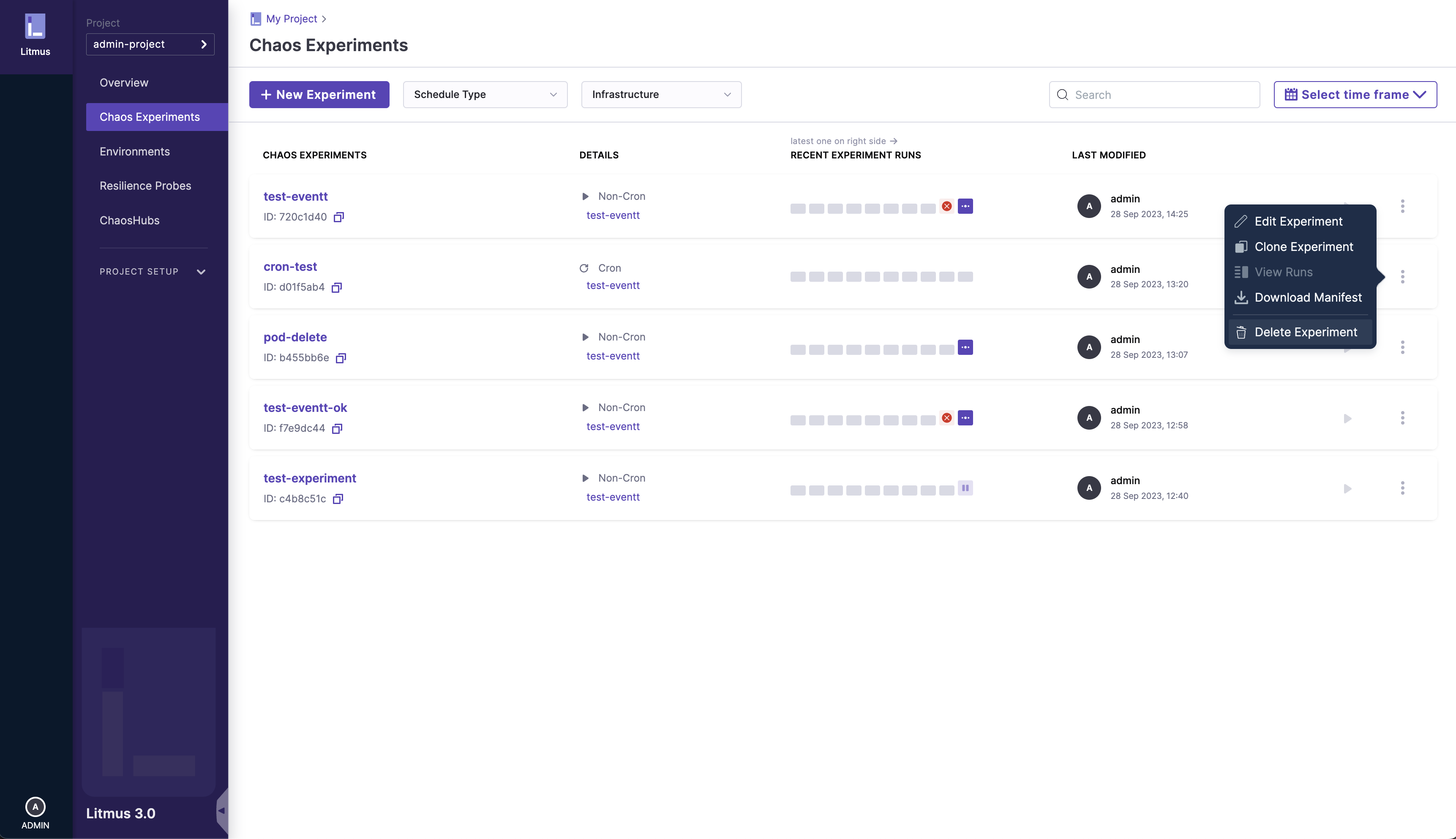 You can learn about the concept of chaos experiments here and how to schedule your first chaos experiment here.